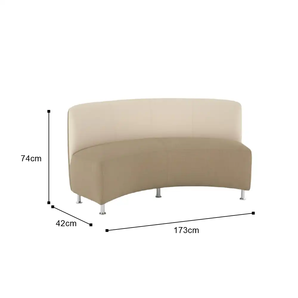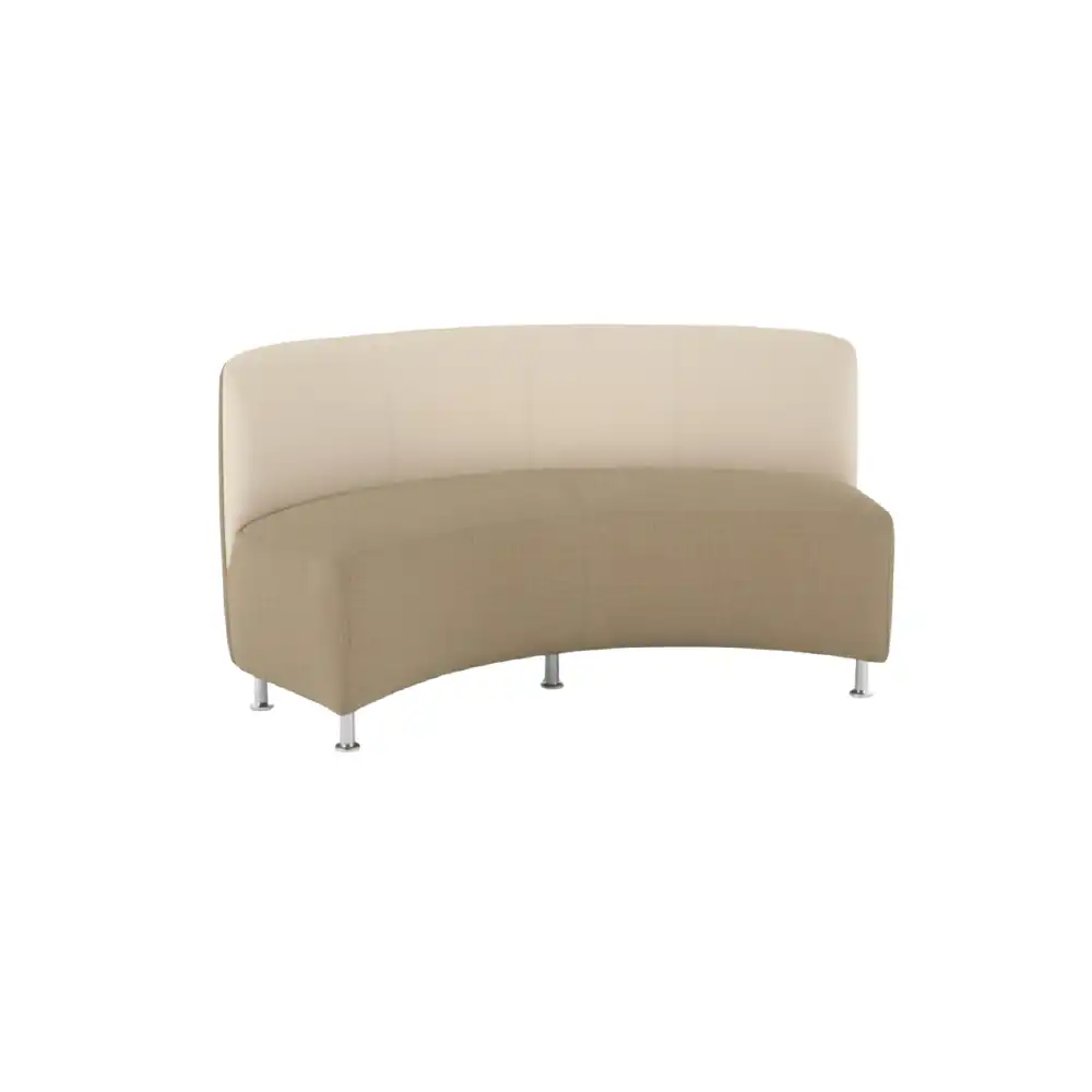 Curved beige sofa that forms smooth, social seating islands for premium events and exhibitions.
