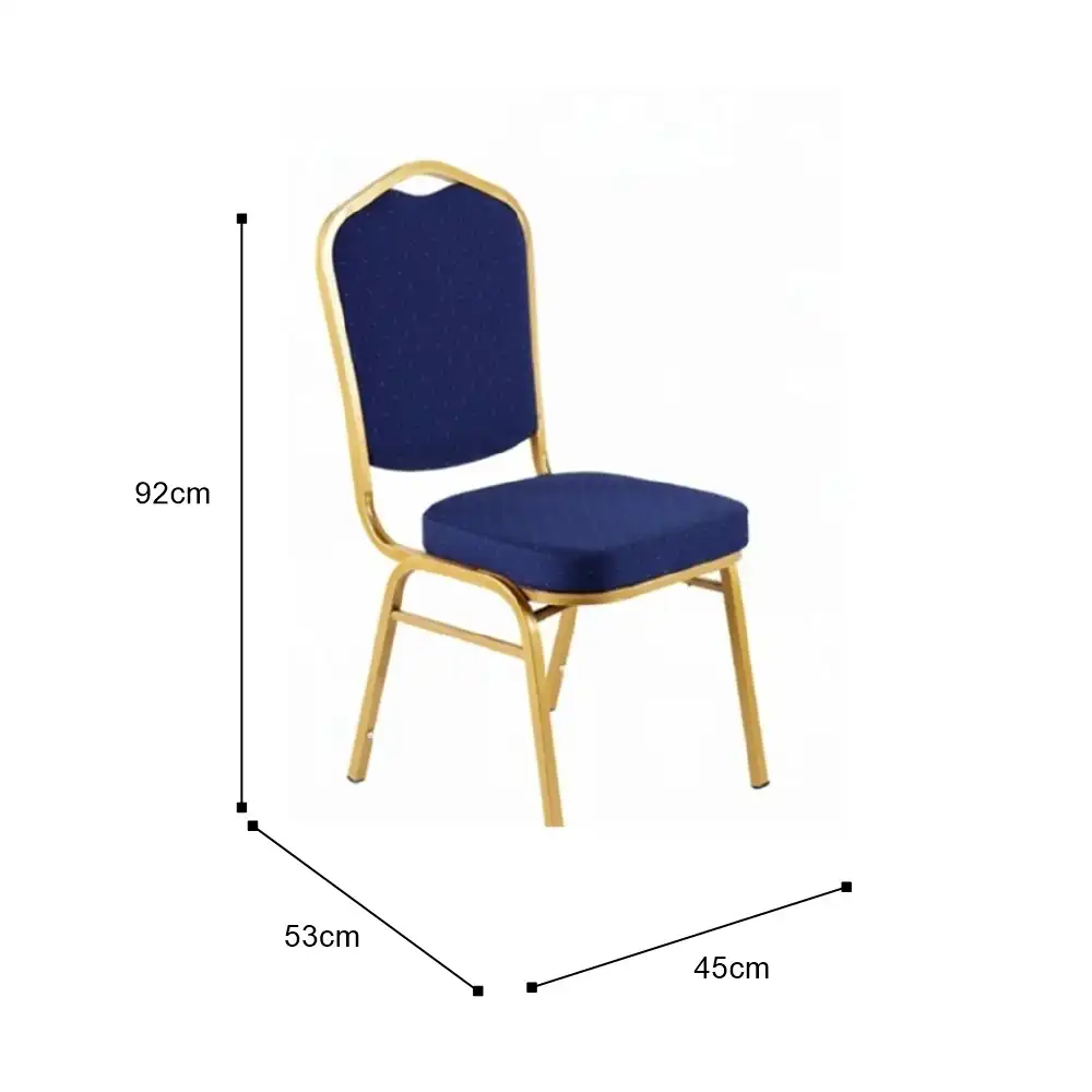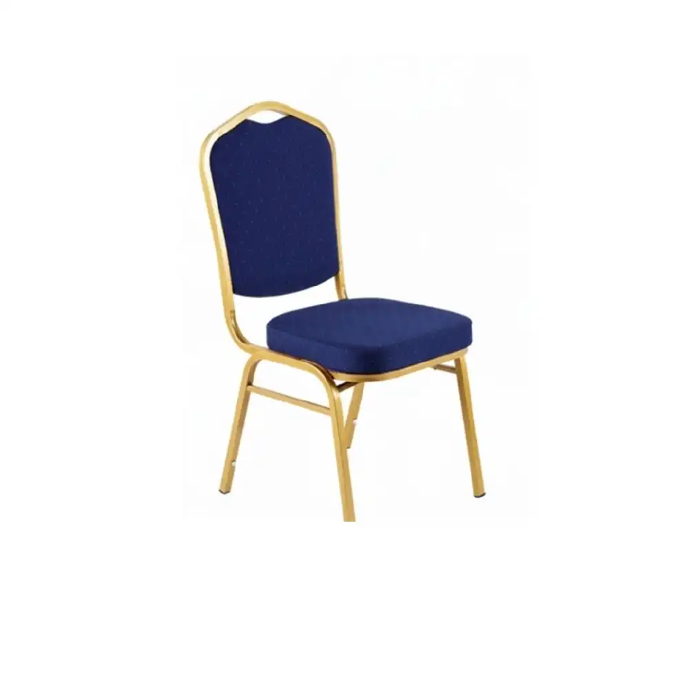 Blue banquet chair suitable for conferences, seminars, and large audience seating.