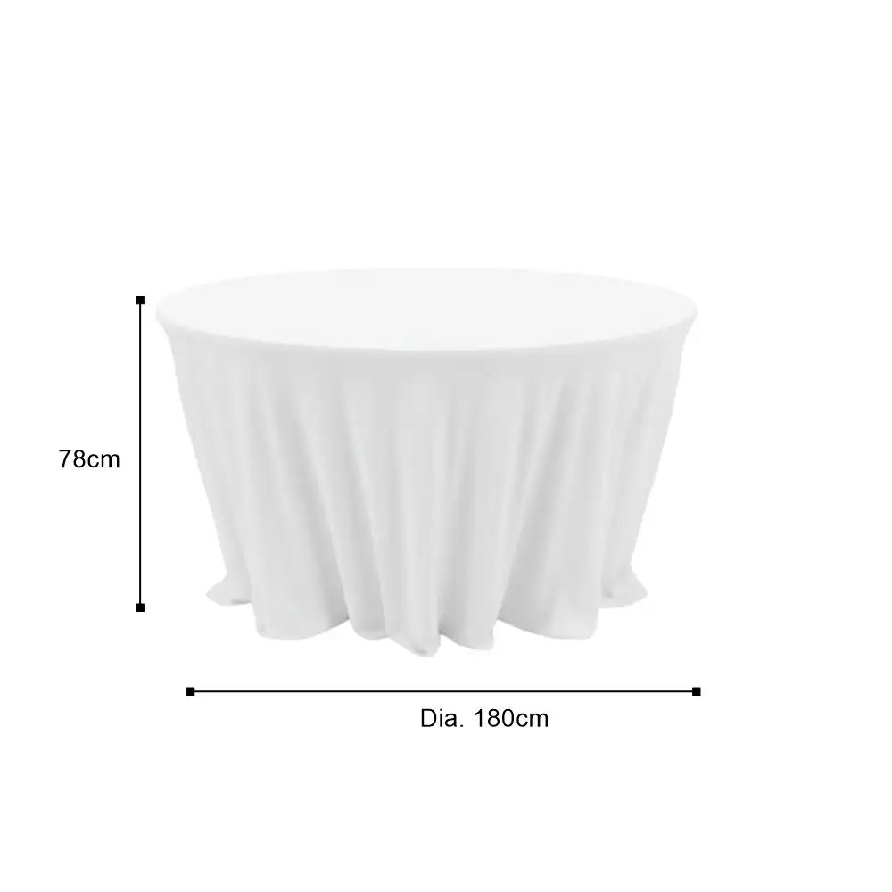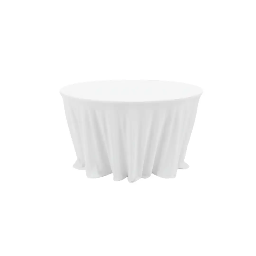 The Banquet Round Cover White provides a bright, elegant base for centrepieces, candles, and charger plates. It is a staple for hotel ballrooms and marquees, giving round dining tables a clean, luxurious finish.