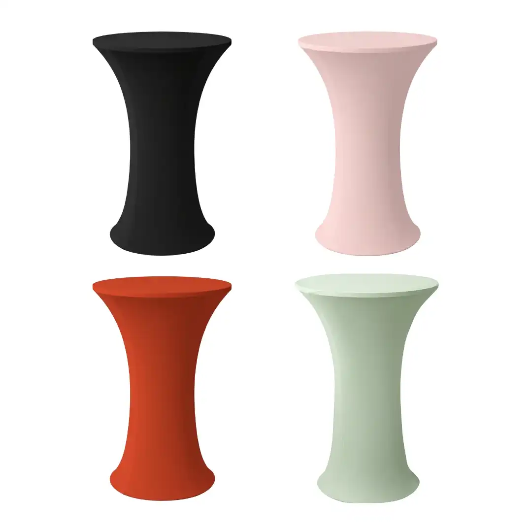 Assorted colour cocktail tables for lively party setups and bars.