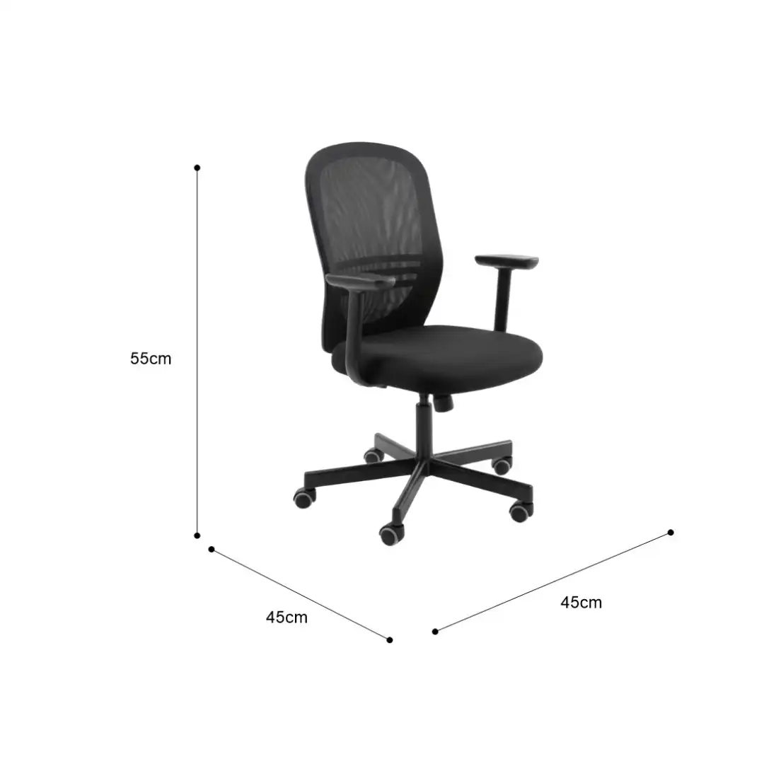 Breathable mesh back office chair with lumbar support and adjustable height. Perfect for corporate conferences, registration desks and training sessions in hot Dubai climates.