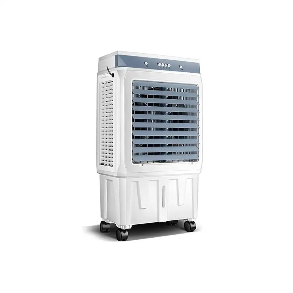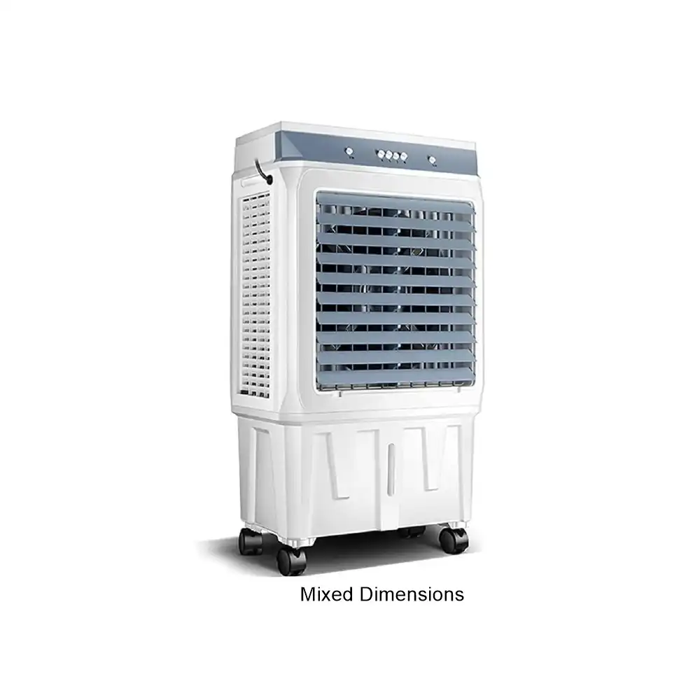 The Outdoor Air Cooler 1 is a portable evaporative cooler that helps reduce temperatures in semi-open spaces. It is suitable for majlis tents, Ramadan setups, industrial events, and outdoor venues needing strong airflow.