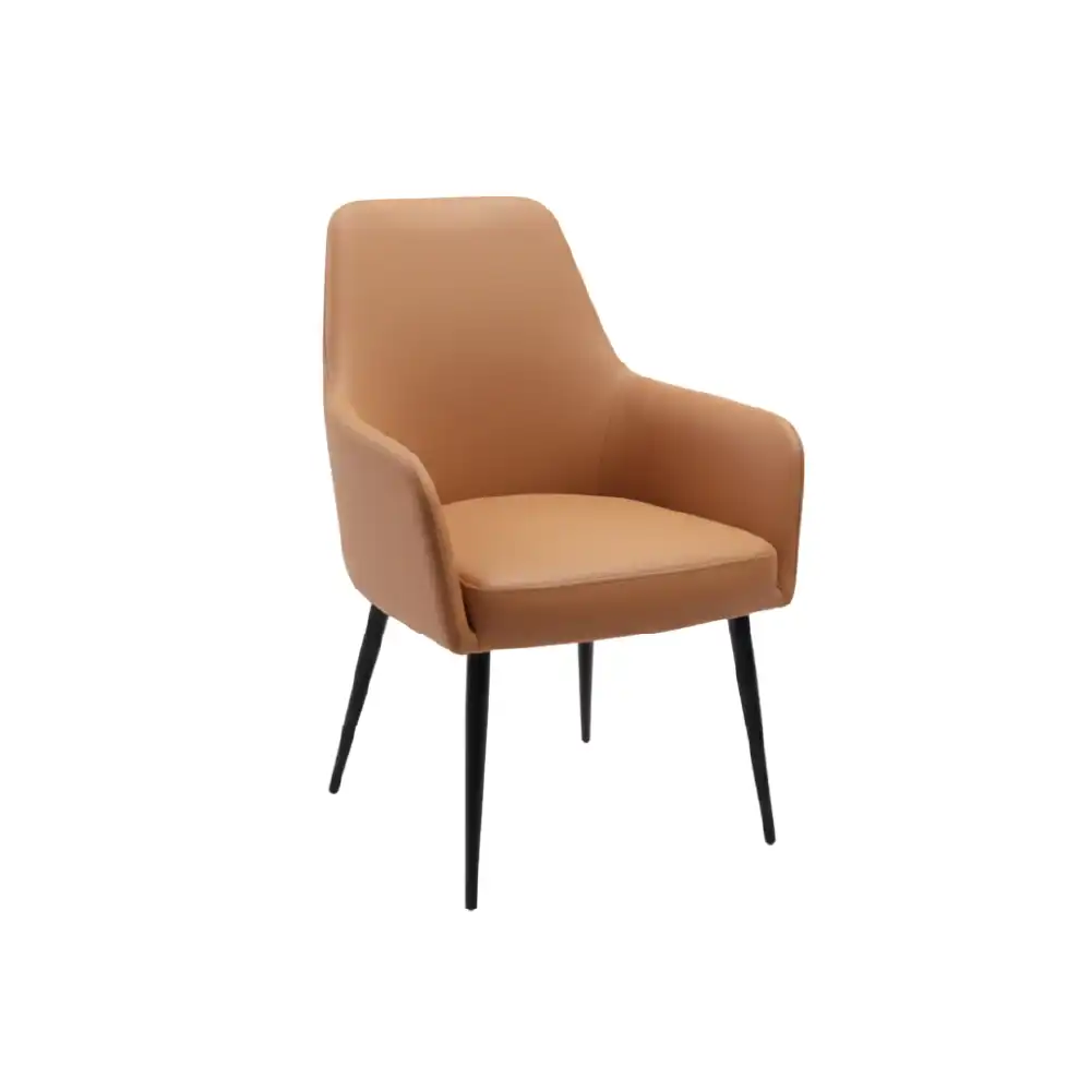 Brown faux?leather chair suited for corporate events and caf??style setups.