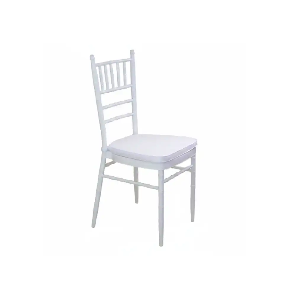 White Tiffany chair rental for ceremonies, garden weddings, and elegant parties.