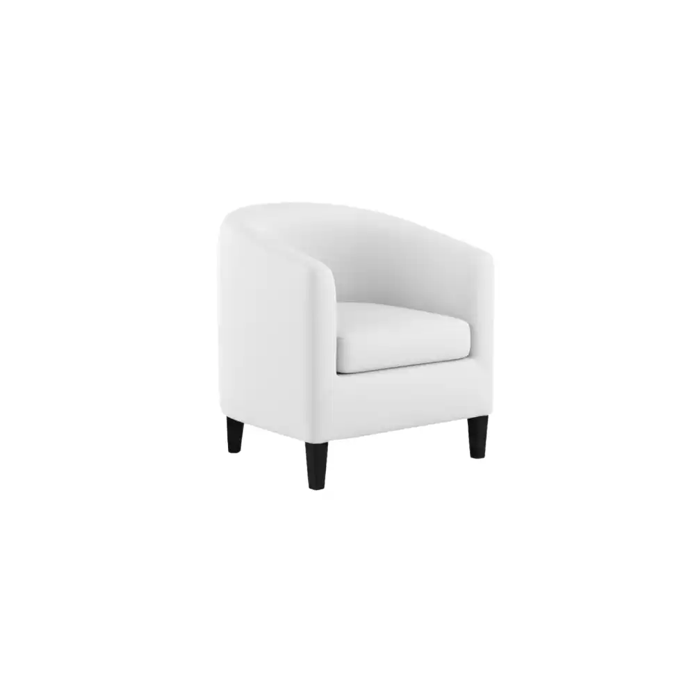 Compact modern tub chair in white, ideal for exhibitions, receptions, and small lounge layouts.