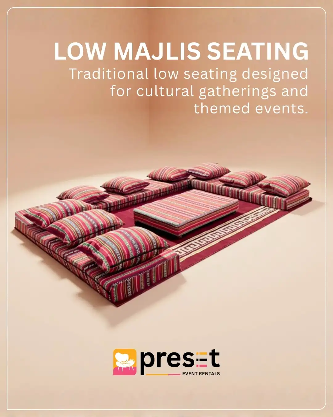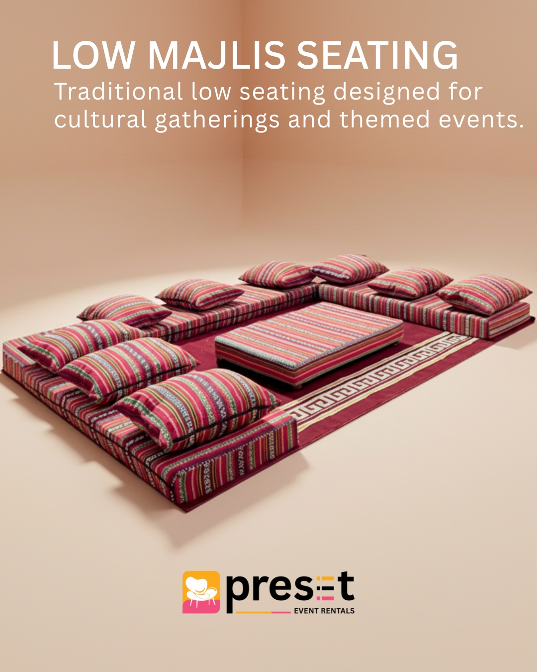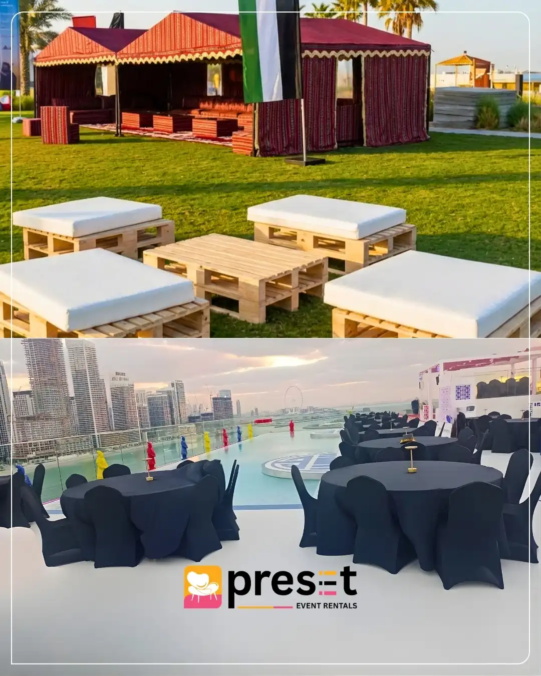 From seating and tables to complete event layouts, our collection is curated to meet professional and cultural event requirements across the UAE.