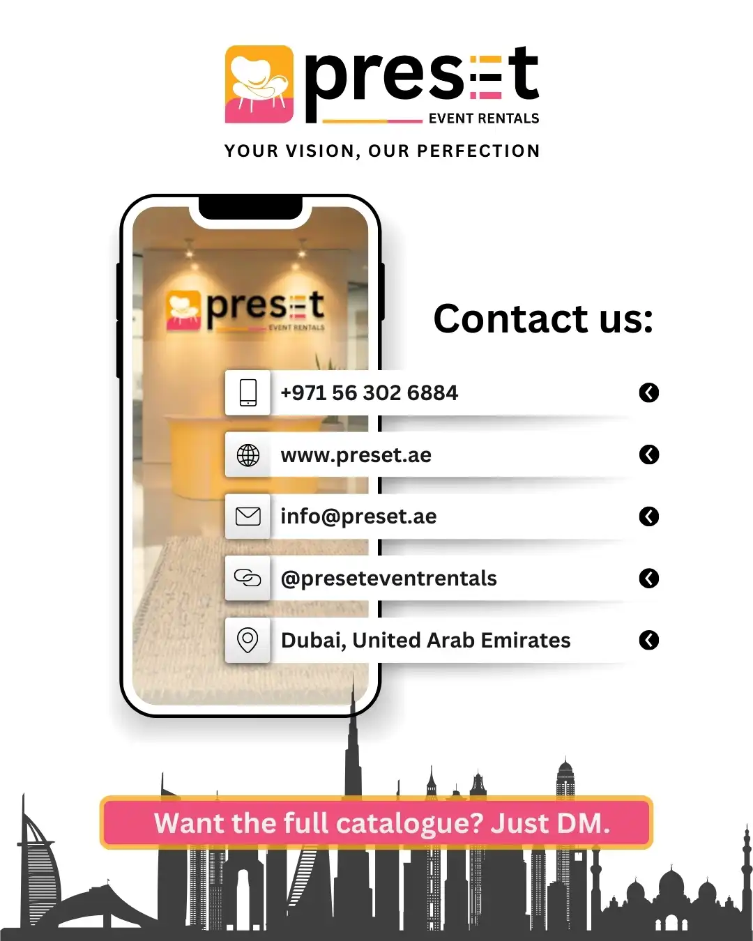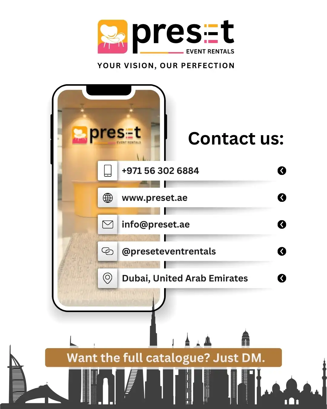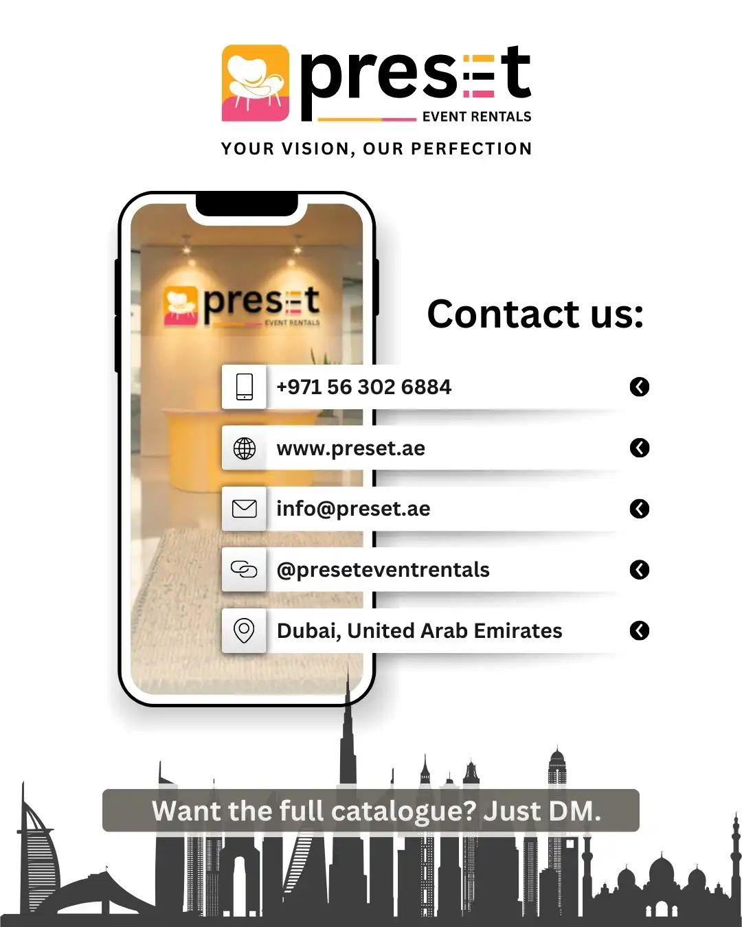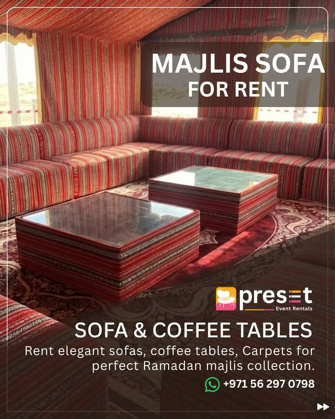 From seating and tables to complete event layouts, our collection is curated to meet professional and cultural event requirements across the UAE.